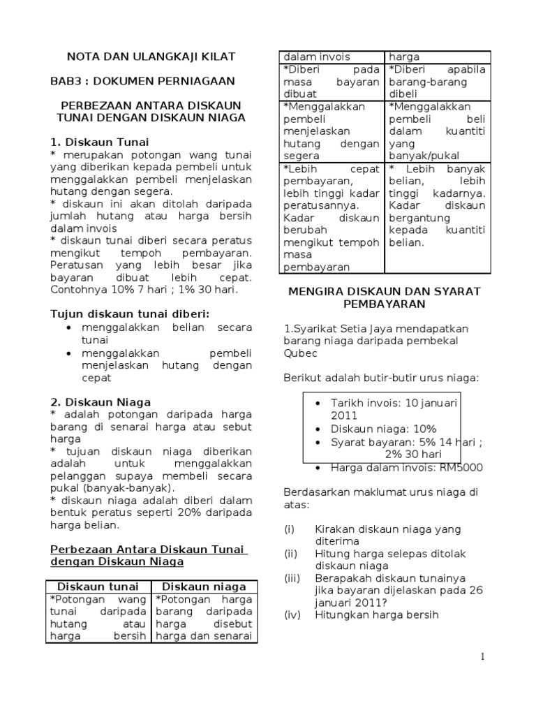 Contoh Pengiraan Diskaun Niaga Diskaun Tunai Pdf